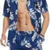 - SUMMER CASUAL FLORAL SET— Men’s Hawaiian Shirt loose fit, button-down short sleeve, spread collar; Beach Shorts with slanted side pockets and rear pockets, elastic waist drawstring. Simple and classic matching of shirts and shorts suits, save you the time of choosing to match.